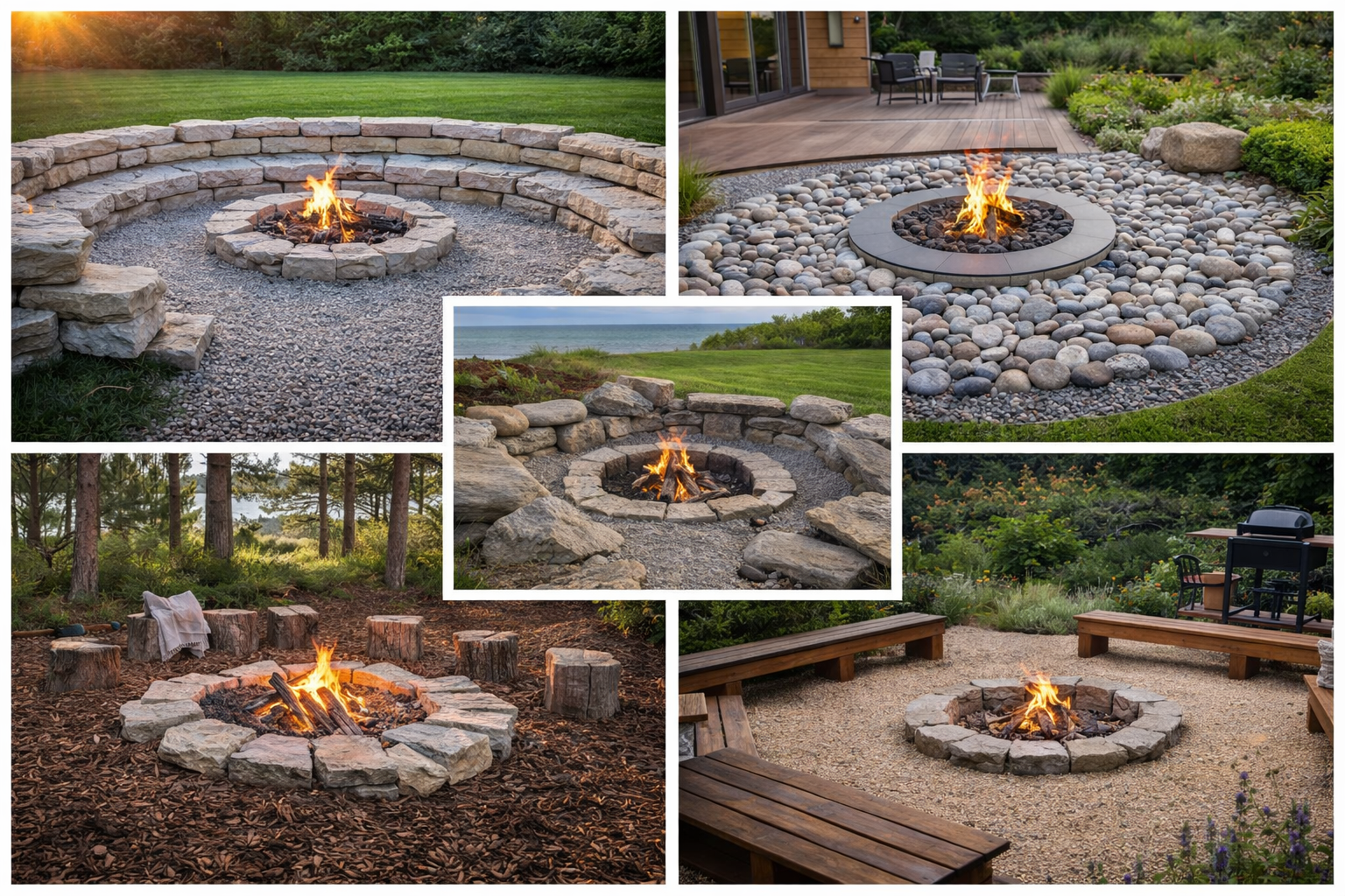 Ehitus: Pärast pinnase koorimist paigalda tugev geotekstiil. Äärista ala metallist või plastikust peenraäärega. Täida ala 10 cm paksuselt ümarate jõeskillidega (nt 16–32 mm või suurem). Lõkkeaseme enda ümber kasuta tulekindlaid kive.