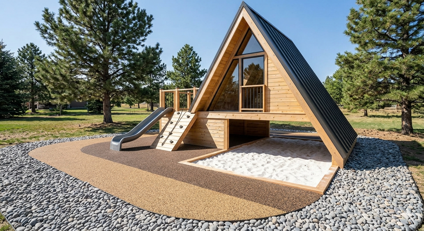 Kaasaegne ja põnev mänguala lastele, kus rõhk on turvalisusel ja looduslikel materjalidel. A-raam on klassika, mis on teinud uue tulemise. Kuna Eesti suved on heitlikud, pakub maja alune liivakast kaitset nii ootamatu vihma kui ka terava päikese eest.